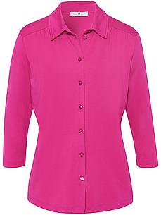 Jerseyblouse van PETER HAHN, met 3/4-mouwen en voorwaartse schoudernaad. Licht getailleerd model met doorlopende knoopsluiting, ruches vooraan en afgeronde zoom. Lengte ca. 65 cm. Het puurste draagplezier van zachte, huidvriendelijke jersey van 95% viscose, 5% Elastan. Deze jerseyblouse is machinewasbaar. fijnwas tot 30°. chloorbleken niet mogelijk. warm strijken. niet chemisch te reinigen. drogen in de droger niet mogelijk. 36, 38, 40, 42, 44, 46, 48, 50, 52