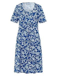Jerseyjurk “Selma” van GREEN COTTON met een vrouwelijke ronde halslijn en 1/2 mouwen. Een droom in helderblauw met een fijne bloemenprint. Nauwsluitend, casual en klimaatregulerend met ruches onder de buste en comfortabele zijnaadzakken. Elke jurk is uniek. 100% katoen (biologisch), GOTS gecertificeerd. Lengte ca. 110 cm. Deze jersey jurk is wasbaar in de machine. wasbaar tot 40°. chloorbleken niet mogelijk. warm strijken. niet chemisch te reinigen. drogen in de droger niet mogelijk. 36, 38, 40, 42, 44, 46, 48, 50, 52