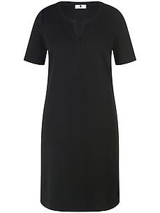Aansluitende tricot jurk van ANNA AURA met een V-opening bij de ronde hals en 1/2 mouwen. Ongecompliceerd, kreukvrij en zeer comfortabel van strak gebreide structuurjersey. De perfecte jurk voor elke dag, voor op reis en kan ook passend worden gestyled voor een evenement. 76% katoen, 22% polyamide, 2% elastaan. Lengte in maat 42 ca. 100 cm. Deze tricot jurk is machinewasbaar. fijnwas tot 30°. chloorbleken niet mogelijk. warm strijken. chemische reiniging, veilig. drogen in de droger niet mogelijk. 40, 42, 44, 46, 52