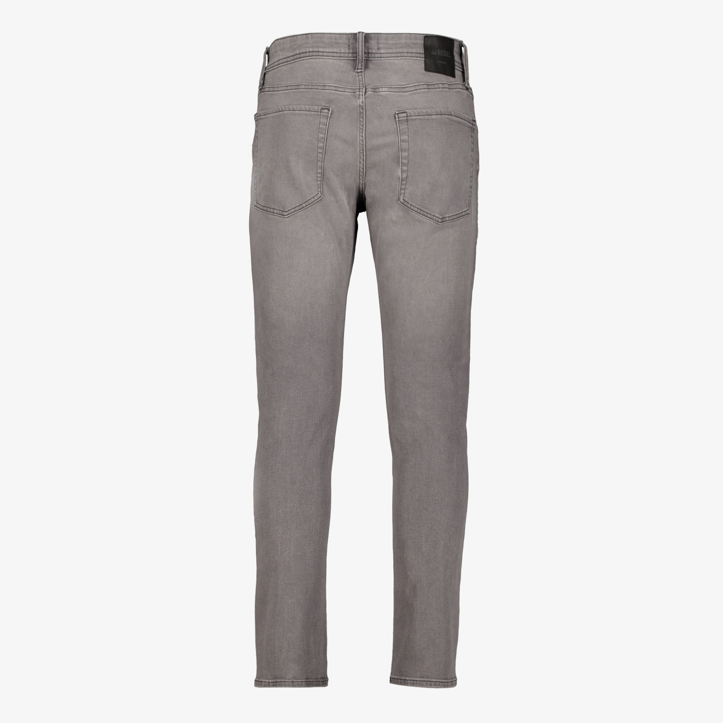Grijze heren jeans van JJ REBEL in lengtemaat 34. Voorzien van een knoop- en ritssluiting, riemlusjes in de boord en twee voor- en achterzakken. De broek heeft een slim fit pasvorm en een merklabel aan de achterzijde. Gemaakt van 70% katoen, 28% polyester en 2% elastaan.