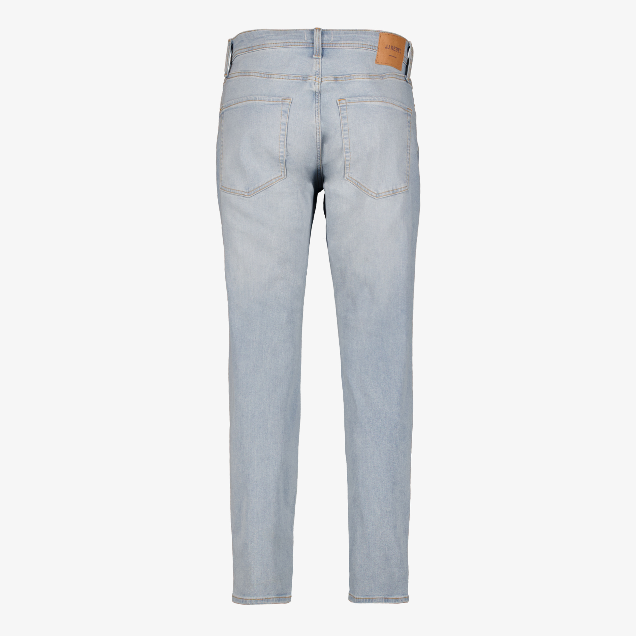 Grijsblauwe heren jeans van JJ REBEL in lengtemaat 34. Voorzien van een knoop- en ritssluiting, riemlusjes in de boord en twee voor- en achterzakken. De broek heeft een tapered fit pasvorm en een merklabel aan de achterzijde. Gemaakt van 70% katoen, 28% polyester en 2% elastaan.