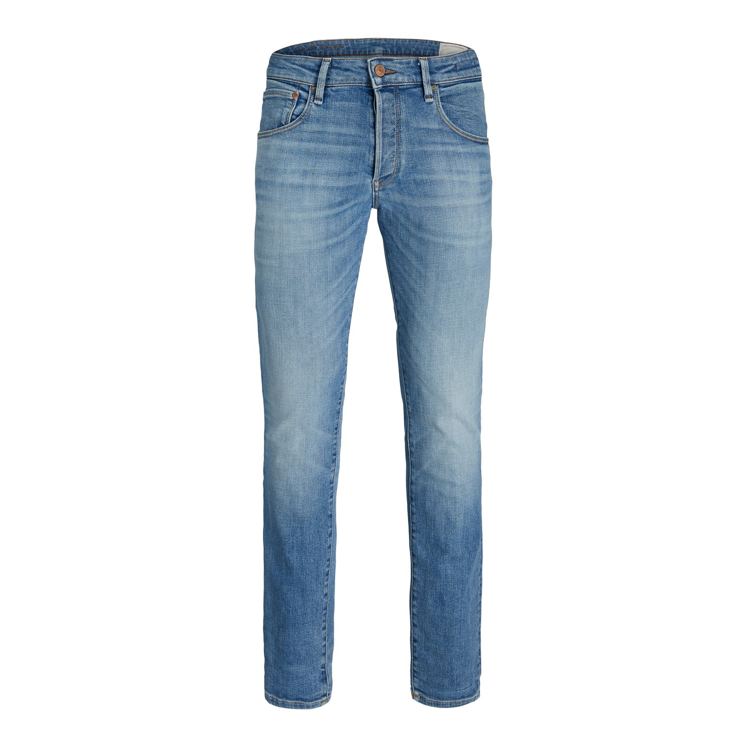 Heren jeans van het merk Jack & Jones. De broek is gemaakt van hoogwaardig katoen, polyester en elastaan. De elastaan zorgt ervoor dat de broek veel stretch heeft en dus een mooi aansluitende pasvorm heeft.