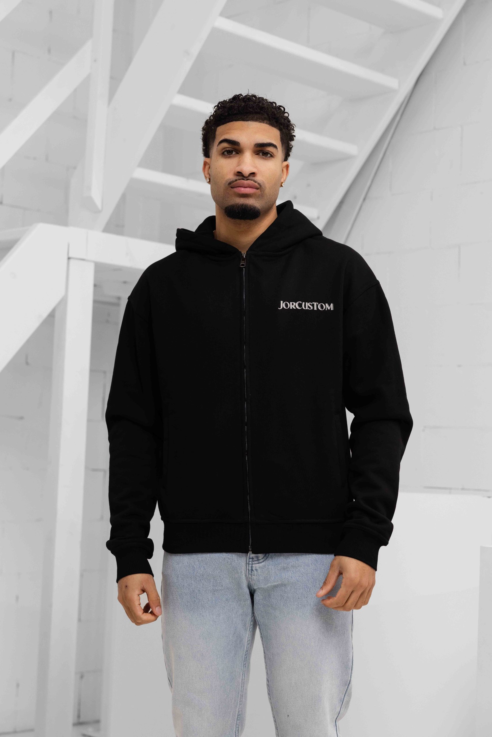 Jorcustom Fleece Ribbon Zipped Hoodie Heren Zwart – Maat XXL – Kleur: Zwart | Soccerfanshop