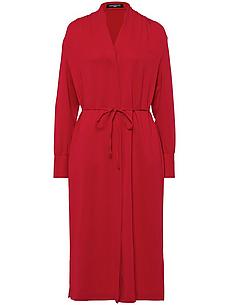Jurk van FADENMEISTER BERLIN met lange mouwen en staande halsboord. Zeer flatteus en een echt fashion statement Dit model van soepel, elastisch weefsel kunt u naar vele gelegenheden dragen. De tijdloze snit met een doorlopende, blinde knoopsluiting, plooitjes op de schouder, naadzakken en zijsplitjes maakt een uitgesproken chique indruk en is heerlijk comfortabel. Met of zonder de bindceintuur te dragen. Van 96% viscose, 4% elastan. Gecertificeerd volgens Standard 100 by OEKO-TEX®. Lengte ca. 120 cm. Deze jurk is machinewasbaar. fijnwas tot 30°. chloorbleken niet mogelijk. warm strijken. chemische reiniging, veilig. drogen in de droger niet mogelijk. 40