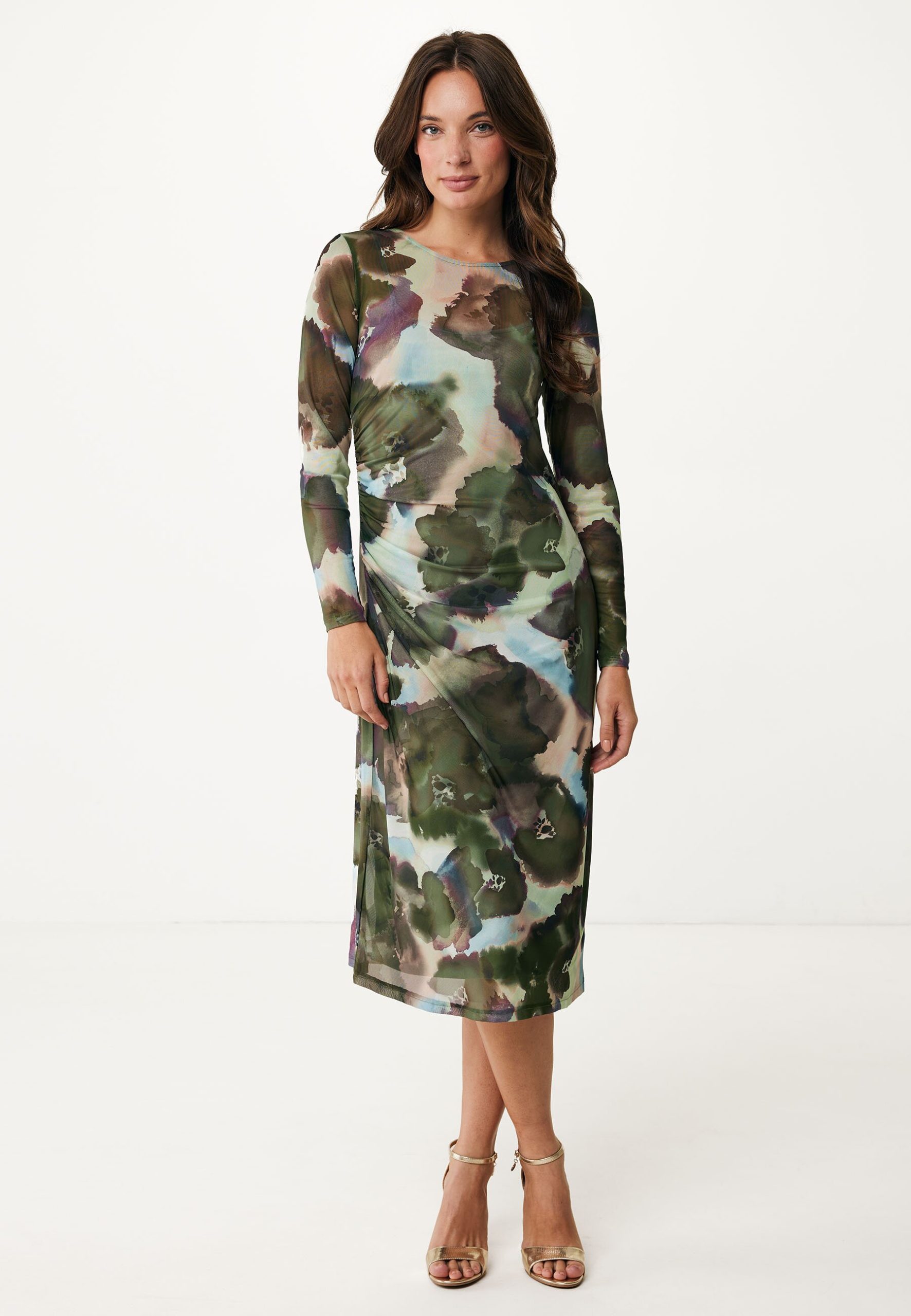Deze khaki groene jurk met bloemenprint is een veelzijdige toevoeging aan je garderobe. Gemaakt van polyester en elastaan, biedt deze jurk een lichte rek voor optimaal draagcomfort. De elegante mesh stof zorgt voor een luchtige uitstraling, perfect voor elke gelegenheid. Combineer met stijlvolle sandalen voor een ontspannen, maar verfijnde look.
