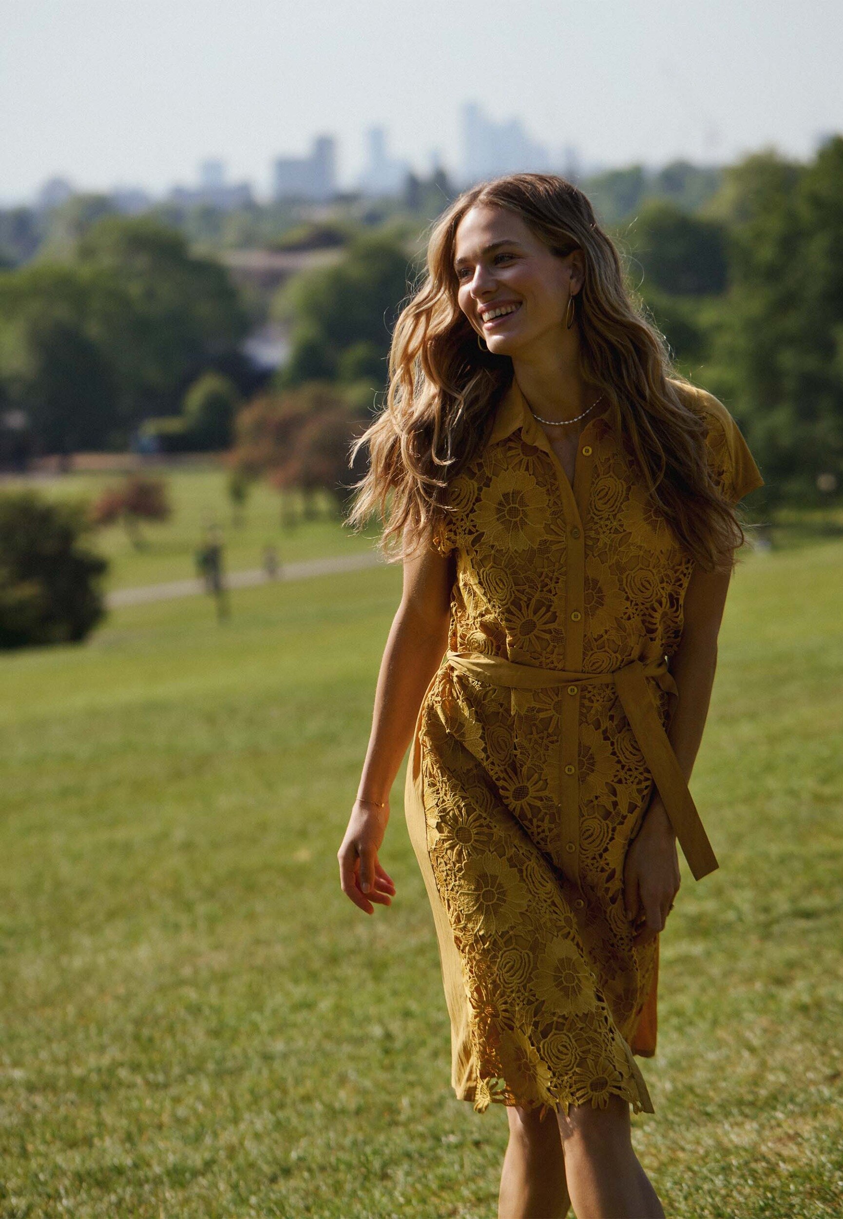 Deze mosterdgele jurk met bloemenpatroon en kantdetails is een stijlvolle keuze voor elke gelegenheid. Gemaakt van hoogwaardige materialen biedt de jurk niet alleen een prachtige uitstraling maar ook een comfortabel draagcomfort. De korte mouwen en het bijpassende ceintuur benadrukken je taille en zorgen voor een elegante pasvorm, perfect voor een zomerse dag. Combineer de jurk met sandalen voor een casual look of met hakken voor een meer formele uitstraling. Bekijk meer opMexx dameskleding.
