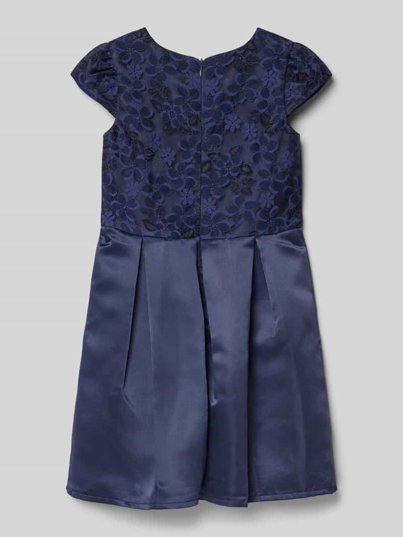 Jurk van happy girls voor meisjes;Materiaalmix met katoengehalte;Recht model;Ronde hals;Kapmouwen;Etskanteffect;Stolpplooien;Ritssluiting aan de achterkant;Ruglengte bij maat 116: 64 cm