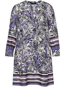 Jurk van EMILIA LAY met V-inzet bij de ronde hals, lange mouwen en zakken in de zijnaden. Losjes vallend, ruimvallend en heerlijk comfortabel Soepel weefsel van 100% viscose met print in moderne kleuren en gestreepte randen langs de boorden. Elke jurk is uniek. LENZING™ ECOVERO™-viscose is een geregenereerde cellulosevezel. Lengte in maat 42 ca. 100 cm. Deze jurk is machinewasbaar. fijnwas tot 30°. chloorbleken niet mogelijk. warm strijken. chemische reiniging. drogen in de droger niet mogelijk. 40, 42, 44, 46, 48, 50, 56