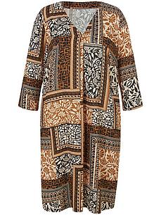 EMILIA LAY jurk met V-hals en 3/4-mouwen. Fashionfavoriet heerlijk comfortabel, zomers, luchtig en trendy tegelijk Gemaakt van prachtig gedrapeerde stof met een patchprint in harmonieuze natuurlijke kleuren, waardoor elke jurk uniek is. Casual en modern model met een brede plooi aan de voorkant bij de halslijn. 100% viscose. Lengte in maat 42 ca. 102 cm. Deze jurk is machinewasbaar. wasbaar tot 30°. chloorbleken niet mogelijk. warm strijken. chemische reiniging. drogen in de droger niet mogelijk. 40, 42, 44, 46, 48, 50, 52, 54