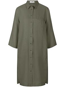 Jurk van PETER HAHN, met 3/4 mouwen. Modefavoriet voor stad, vakantie of strand. Casual model met plooi aan de achterkant, steekzakken, paspelzak op de borst en splitten in de zoom. Dankzij de doorlopende knoopsluiting kan de jurk ook als casual lange jas gedragen worden. 100% linnen. Lengte ca. 100 cm. Deze jurk is wasbaar in de machine. fijnwas tot 30°. chloorbleken niet mogelijk. warm strijken. chemische reiniging. drogen in de droger niet mogelijk. 36, 38, 40, 42, 44, 46, 48, 50, 52