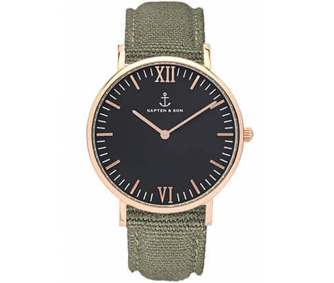 Merk Kapten en Son Materiaal Stainless Steel 316L Serie Campina Horlogekast 36 mm Dikte 7 mm Waterdichtheid 5 ATM Kleur band Rosé goud Band Canvas Breedte band 18 mm Glas Mineral crystal Beweging Ronda 762 Voor Dames, Heren EAN 4251145223762