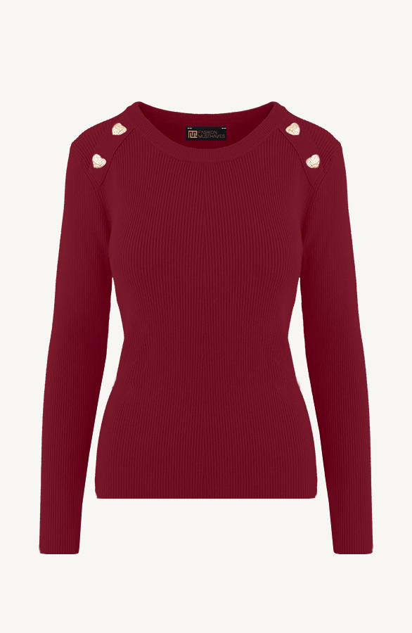 Home » Dames » Kleding » Truien & vesten » Truien » Sweaters & hoodies » Knitted Trui Hartjes Knopen Bordeaux