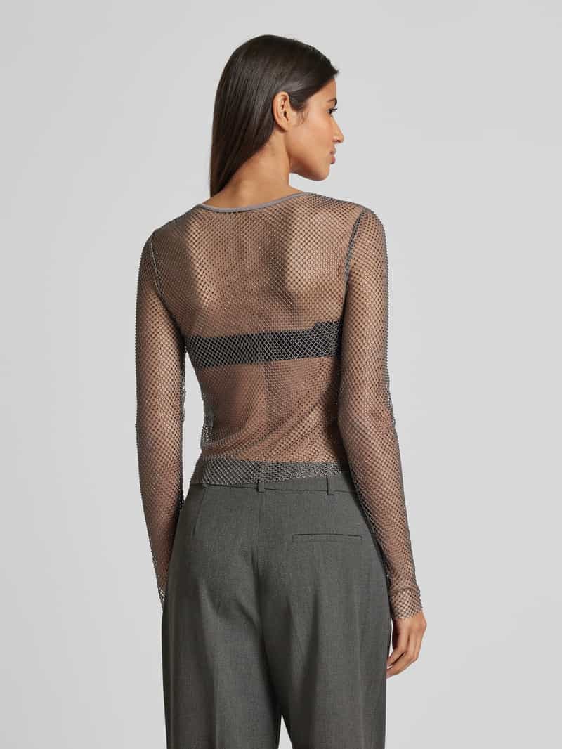 Damesshirt met lange mouwen van Jake*s Casual;Materiaalmix met stretch;Regular fit;Kort;Geribde ronde hals;Ajourwerk;Semi-transparant design;Ruglengte bij maat S: 50 cm