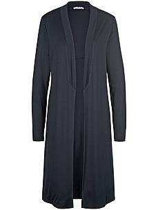 Lang jersey vest van PETER HAHN. Met lange mouwen. Combifavoriet in effen jersey. Afkledend model zonder sluiting. Van 95% viscose, 5% elastan. Lengte ca. 100 cm. Dit jersey vest is machinewasbaar. fijnwas tot 30°. chloorbleken niet mogelijk. warm strijken. chemische reiniging. drogen in de droger niet mogelijk. 36, 38, 40, 42, 44, 46, 48, 50, 52