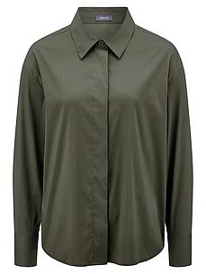 Lange blouse van BASLER met iets verlaagde schoudernaden en lange mouwen. Een goed te combineren blouse met geappliqueerde streepbandjes langs de zijnaden als modieuze upgrade. Overhemdmodel met een wijdte verlenende stolpplooi achter, zakken in de zijnaden, blinde knoopsluiting en afgeronde, voor enigszins korte zoom. Van 75% katoen, 22% polyamide, 3% elastan. Lengte ca. 76 cm. Machinewasbaar. fijnwas tot 30°. chloorbleken niet mogelijk. koud strijken. chemische reiniging. drogen in de droger niet mogelijk. 36, 38, 40, 42, 44, 46, 48, 50, 52