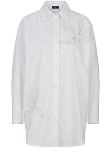 Lange blouse van TALBOT RUNHOF X PETER HAHN deze statement-blouse met geappliqueerde bloemen van chiffon en glimmende pailletten geeft sportieve jeans en ook elegante geweven broeken een exclusieve look Lang model met verlaagde schoudernaden, doorknoopsluiting en een afgeronde zoom. 100% katoen. Lengte ca. 78 cm. Machinewasbaar. fijnwas tot 30°. chloorbleken niet mogelijk. warm strijken. niet chemisch te reinigen. drogen in de droger niet mogelijk. 38, 40, 42