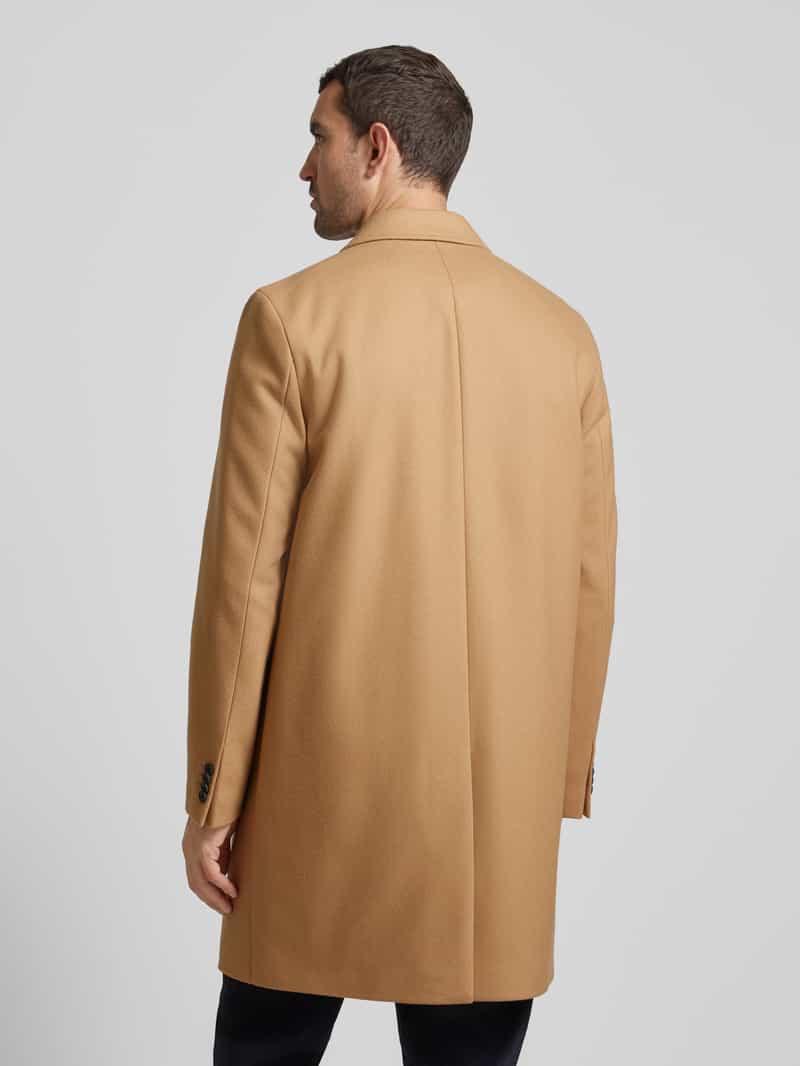 Lange herenjas van HUGO;Scheerwolmix;Regular fit;Model ‘Malte’;Reverskraag;Knoopsluiting;Steekzakken;Ruglengte bij maat 50: 100 cm;Schouderbreedte bij maat 50: 46 cm;Borstomvang bij maat 50: 65 cm;Mouwlengte bij maat 50: 70 cm
