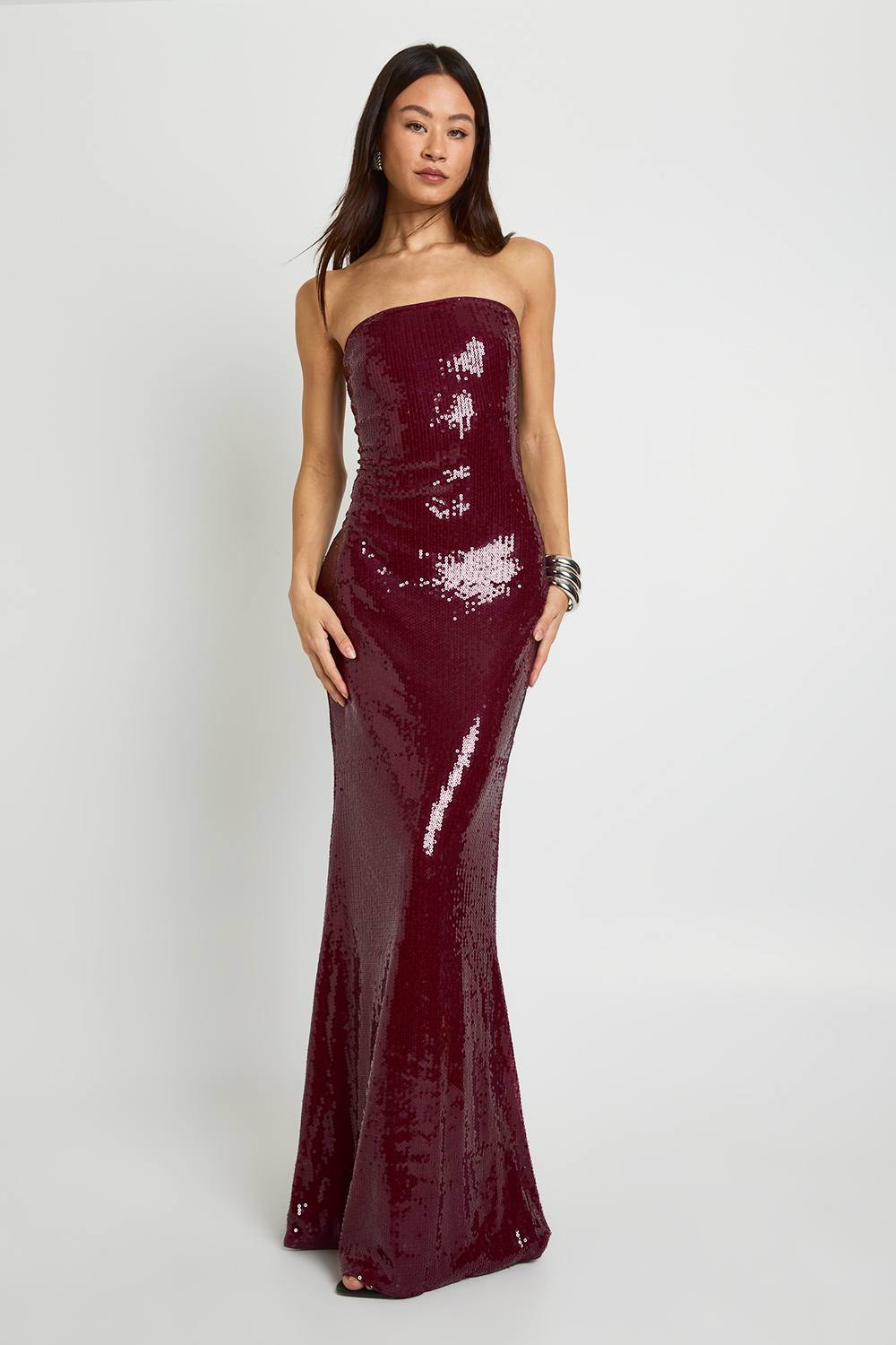 Lange Pailletten Bandeau Maxi Jurk