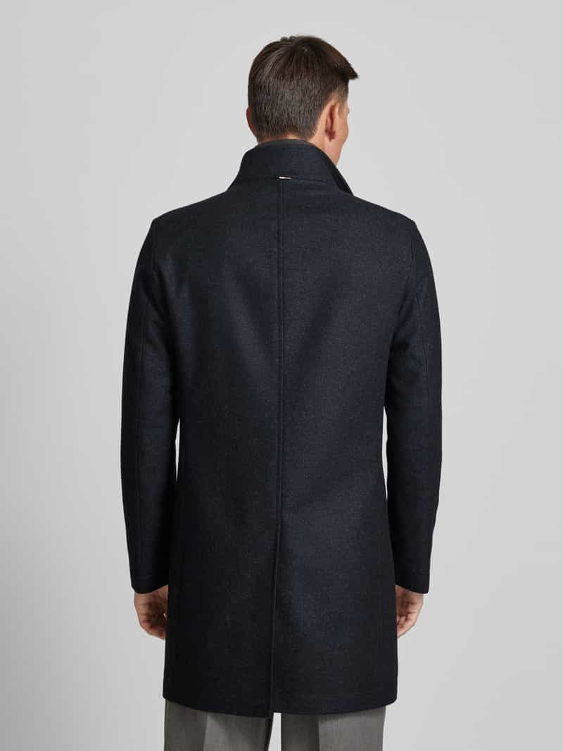 Lange wollen herenjas van BOSS BLACK;Wolmix;Recht model;Model ‘Hyde’;Opstaande kraag;Doorknoopsluiting;Steekzakken opzij;Ruglengte bij maat 50: 96 cm;Schouderbreedte bij maat 50: 42 cm;Borstomvang bij maat 50: 51 cm;Mouwlengte bij maat 50: 69 cm