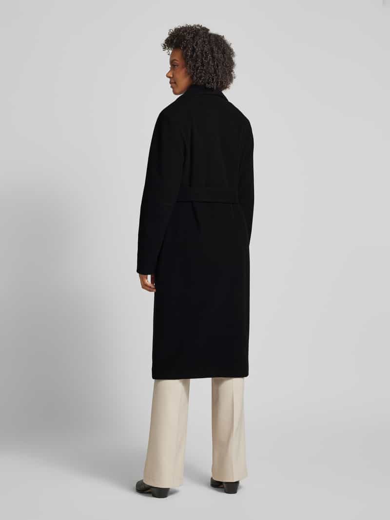 Lange wollen jas met strikceintuur en reverskraag