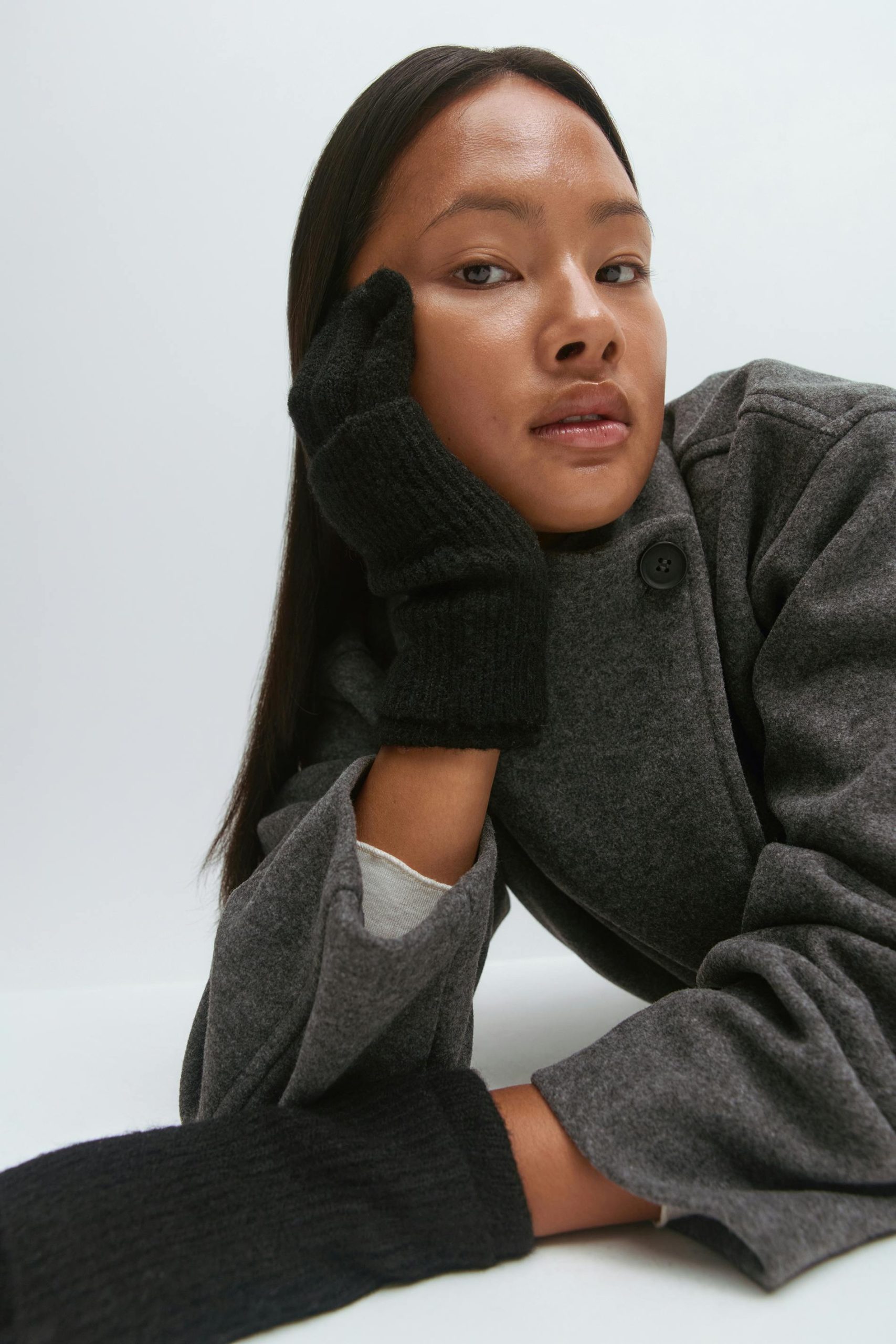 Gebreide handschoenen met extra-lange en opgevouwde manchet.