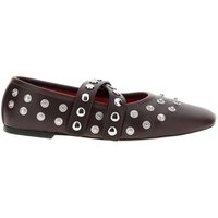 – Leather Ballerina Flats With Double Straps And Stu in zwart