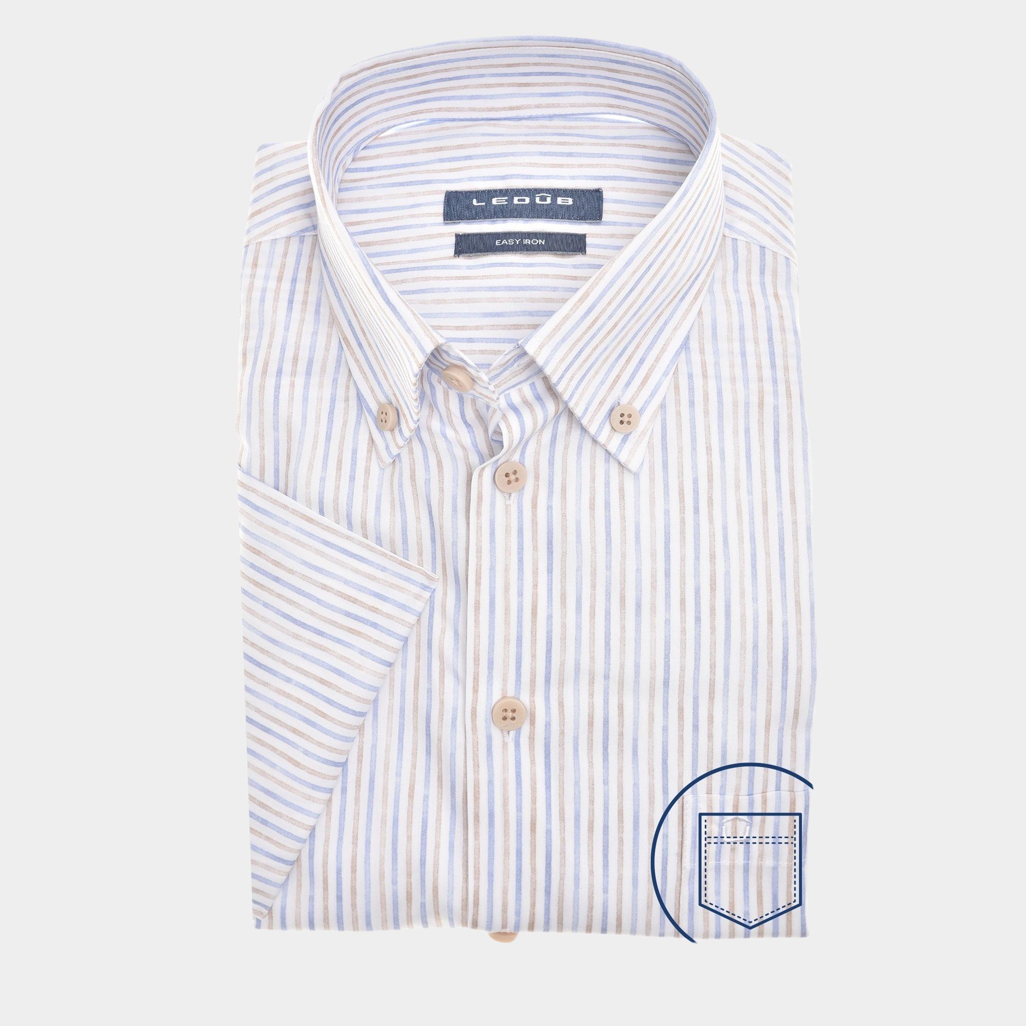 Dit blauwe business overhemd van het merk Ledub is perfect voor de stijlvolle man die er zakelijk en verzorgd uit wil zien, ook tijdens warmere dagen. Het overhemd heeft een moderne fit en is gemaakt van 100% katoen, wat zorgt voor een comfortabele pasvorm en een luxe uitstraling. Dit overhemd heeft korte mouwen en is daardoor ideaal voor de lente/zomer. De button down kraag geeft het overhemd een klassieke uitstraling, terwijl de blauwe kleur zorgt voor een tijdloze en veelzijdige look. Dit overhemd is eenvoudig te onderhouden en kan gewassen worden tot 30°C. Combineer het met een nette broek voor een formele look, of draag het op een chino voor een meer casual outfit. Dit overhemd is een must-have voor elke man die zijn garderobe wil uitbreiden met kwalitatieve en trendy items. Bestel nu en maak indruk op elke gelegenheid!