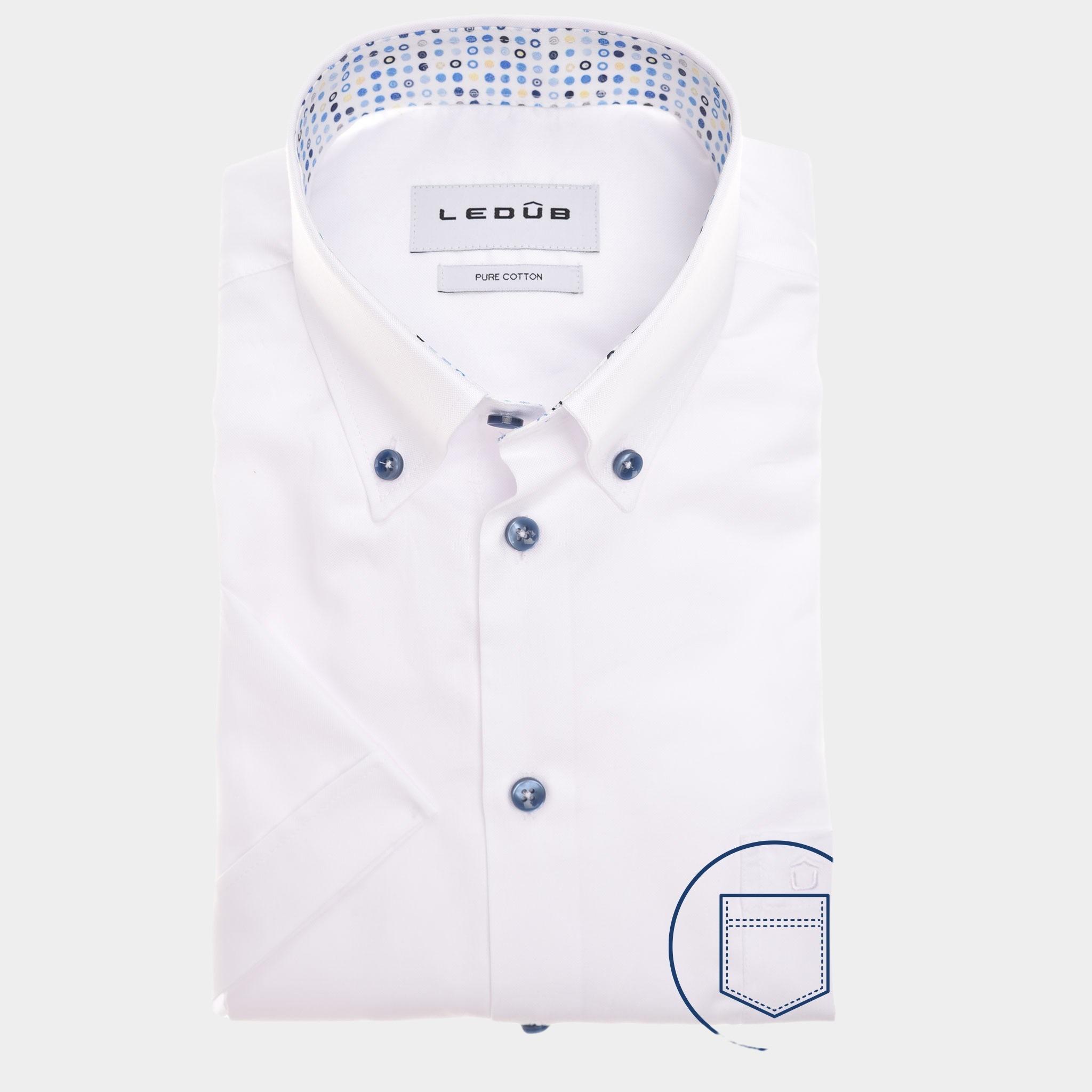 Wit overhemd met korte mouw van het merk Ledub. Dit business hemd is gemaakt van 100% katoen en heeft een modern fit. Ideaal voor de lente/zomer. Het overhemd kan gewassen worden tot 40°C. Het overhemd is voorzien van een button down kraag en heeft een borstzak. Met dit stijlvolle overhemd kom je altijd goed voor de dag, zowel op het werk als tijdens een casual gelegenheid. Combineer het met een nette broek voor een formele look of draag het op een jeans voor een meer casual uitstraling. De korte mouwen zorgen voor extra comfort op warmere dagen. Een tijdloos en veelzijdig kledingstuk dat niet mag ontbreken in de garderobe van een moderne man. Kies voor kwaliteit en stijl met dit Ledub overhemd.