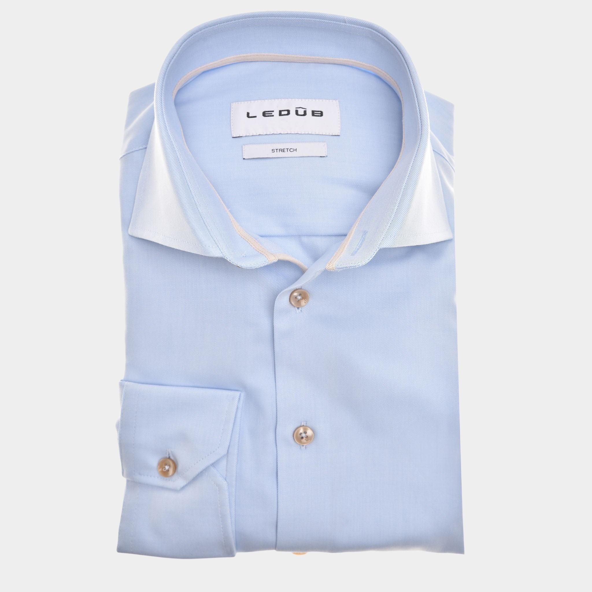 Dit blauwe overhemd van het merk Ledub is perfect voor elke zakelijke gelegenheid. Het hemd heeft lange mouwen en is gemaakt van 53% katoen, 38% polyester en 9% elastaan, waardoor het comfortabel is om te dragen en tegelijkertijd een moderne uitstraling heeft. Het overhemd heeft een modern fit, wat betekent dat het getailleerd is en mooi aansluit op het lichaam. Dit overhemd is ideaal voor de lente en zomer, dankzij de lichte stof en de mogelijkheid om het te wassen tot 40°C. De wide spread kraag geeft het overhemd een klassieke uitstraling, terwijl de toevoeging van stretch zorgt voor extra bewegingsvrijheid. Dit blauwe overhemd is een must-have voor elke moderne man die er stijlvol en verzorgd uit wil zien. Combineer het met een mooie pantalon en nette schoenen voor een complete zakelijke outfit. Bestel nu in onze webshop en voeg dit tijdloze item toe aan jouw kledingcollectie.