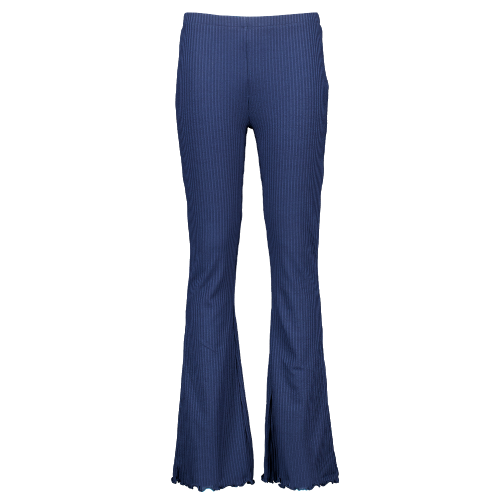 Deze donkerblauwe legging voor meisjes heeft wijd uitlopende pijpen met een golvende zoom. De stof is licht rekbaar door de mix van polyester, viscose en elastaan. Dit zorgt voor bewegingsvrijheid en een prettig draagcomfort. De elastische tailleband maakt de legging makkelijk aan en uit te trekken. Door de effen kleur kun je hem goed combineren met verschillende tops.