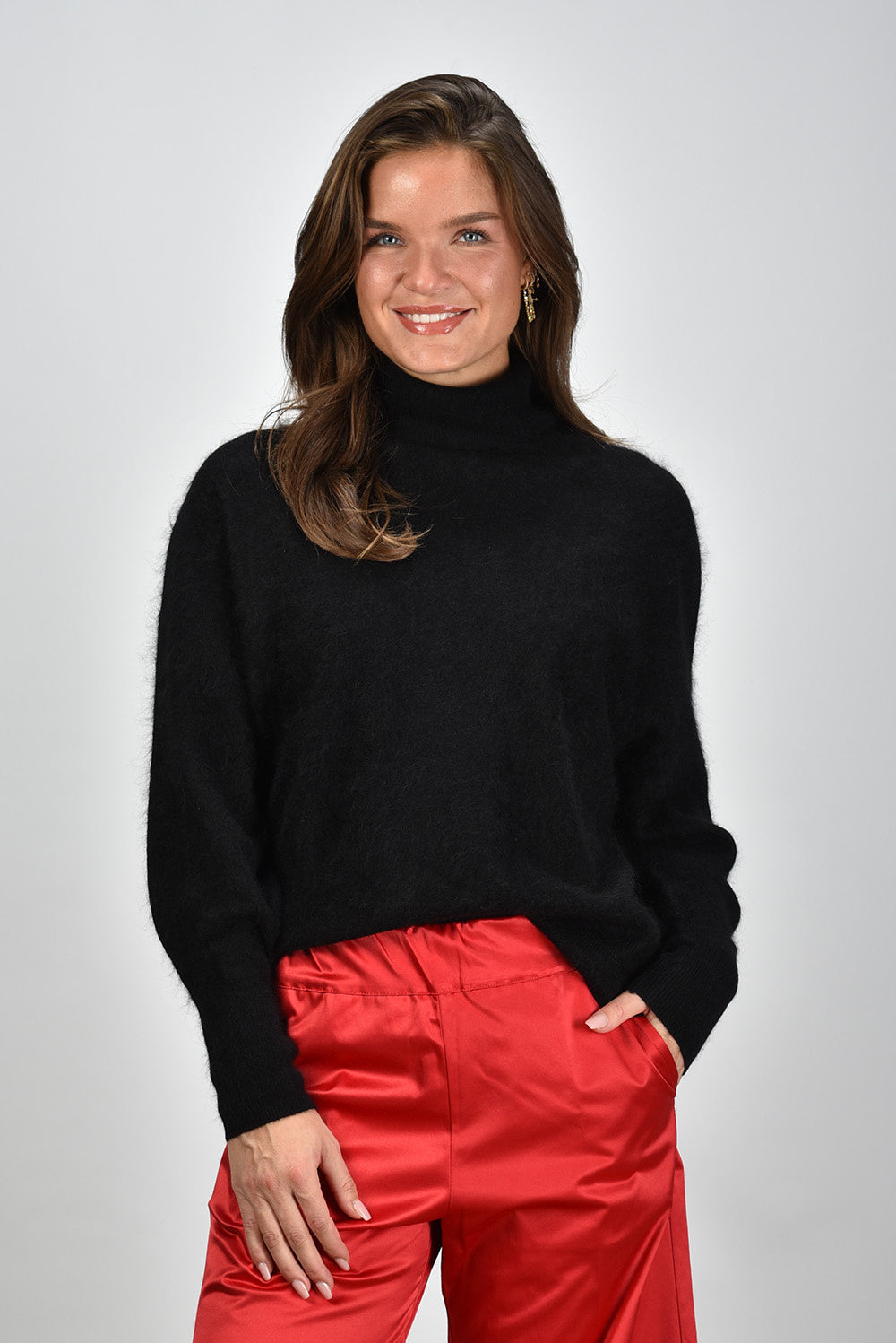 Zie hier de Les Tricots de Lea trui Mareine in noir. Deze luxe trui combineert 70% wol met 30% cashmere voor ultiem comfort en stijl. Het ontwerp biedt een normale pasvorm, ideaal voor dagelijks gebruik. Lise draagt maat M bij een lengte van 1,73m. Artikelnummer: 34995-Noir.