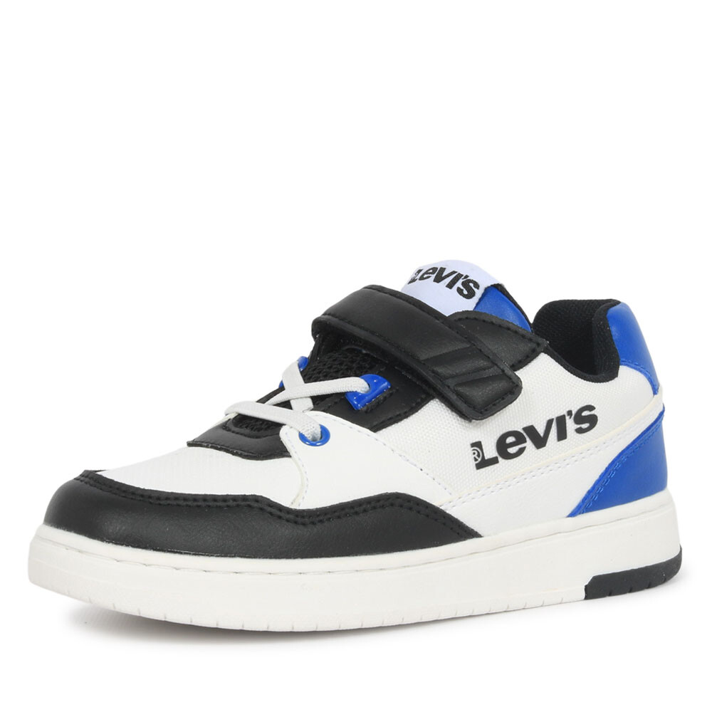 Levi's Shot jongens sneaker uitgevoerd in de kleur wit met zwart en blauwe accenten. Deze sneaker van Levi's is niet alleen heel populair maar ook super comfortabel. De sneaker is gemaakt van verschillende materiaalsoorten als mesh, textiel en imitatieleer. Aan de binnenzijde is de schoen comfortabel gevoerd met zacht textielstof en gewatteerd bij de kraag. De elastieken veters en een klittenbandsluiting zorgen voor een gemakkelijke instap.