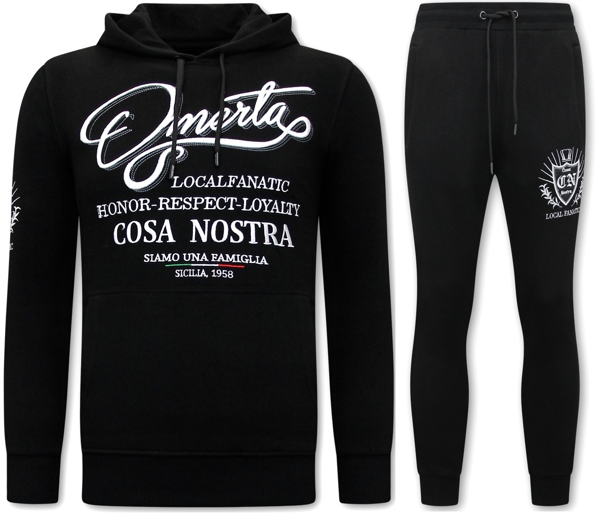 Exclusieve Heren Joggingspak – Omerta, Cosa Nostra – Zwart – Specificaties:- Exclusieve Heren Joggingspak- Omerta, Cosa Nostra- Kleur: Zwart- Artikel code: 11-6517Z- Seizoen: Voorjaar / Najaar- Zakken Vest: 2 Steekzakken- Mouwen: Lange Mouw- Zakken broek: 2 Steekzakken- Kwalitatief Hoogwaardige Afwerking- Materiaal: 84% Katoen en 16% Polyester- Weefsel: Dun geweven- Pasvorm: Slim Fit- Pasvorm broek: Slim Fit- Wasvoorschrift: Machinewas 30 graden, Binnenste buiten wassen (Niet in de droger)- Beschikbare maten: S – M – L – XL – XXL Local Fanatic is een jong merk voor modebewuste mannen die aandacht besteden aan kleding en uiterlijk met de Allure en Glamour. Kenmerkend van het merk zijn de zeefdruk- en digitaal prints die gegarandeerd staan voor kwaliteit van vooruitstrevende stoffen in Italiaanse pasvormen.