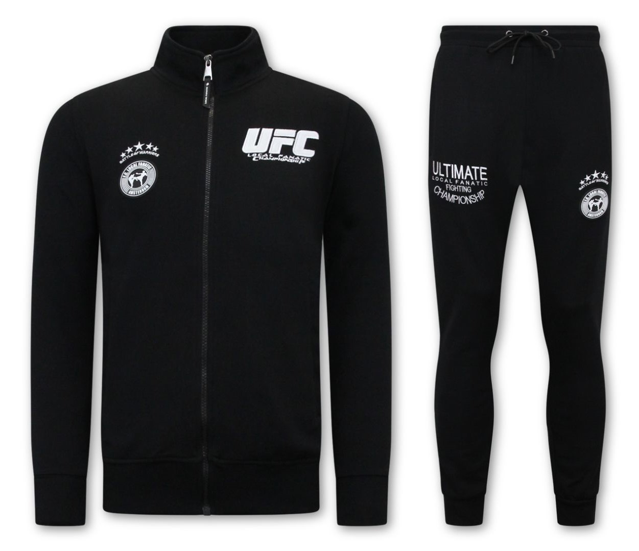 Mannen Joggingspak – UFC Ultimate Championship – Zwart – Specificaties:- Mannen Joggingspak- UFC Ultimate Championship- Kleur: Zwart- Artikel code: 11-6523Z – Seizoen: Voorjaar / Najaar- Zakken Vest: 2 Steekzakken- Mouwen: Lange Mouw- Zakken broek: 2 Steekzakken- Kwalitatief Hoogwaardige Afwerking- Materiaal: 84% Katoen en 16% Polyester- Weefsel: Dun geweven- Pasvorm: Slim Fit- Pasvorm broek: Slim Fit- Wasvoorschrift: Machinewas 30 graden, Binnenste buiten wassen (Niet in de droger)- Beschikbare maten: S – M – L – XL – XXL Local Fanaticis een jong merk voor modebewuste mannen die aandacht besteden aan kleding en uiterlijk met de Allure en Glamour. Kenmerkend van het merk zijn de zeefdruk- en digitaal prints die gegarandeerd staan voor kwaliteit van vooruitstrevende stoffen in Italiaanse