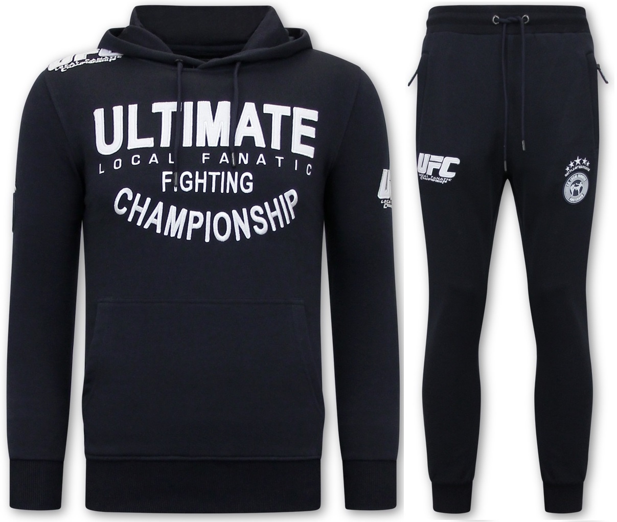 Exclusieve Heren Trainingspak – Ultimate Fighting Championship – Blauw – Specificaties:- Exclusieve Heren Trainingspak- Ultimate Fighting Championship- Kleur: Blauw- Artikel code: 11-6524B- Seizoen: Voorjaar / Najaar- Zakken Vest: 2 Steekzakken- Mouwen: Lange Mouw- Zakken broek: 2 Steekzakken- Kwalitatief Hoogwaardige Afwerking- Materiaal: 84% Katoen en 16% Polyester- Weefsel: Dun geweven- Pasvorm: Slim Fit- Pasvorm broek: Slim Fit- Wasvoorschrift: Machinewas 30 graden, Binnenste buiten wassen (Niet in de droger)- Beschikbare maten: S – M – L – XL – XXL  Local Fanatic is een jong merk voor modebewuste mannen die aandacht besteden aan kleding en uiterlijk met de Allure en Glamour. Kenmerkend van het merk zijn de zeefdruk- en digitaal prints die gegarandeerd staan voor kwaliteit van vooruitstrevende stoffen in Italiaanse pasvormen.