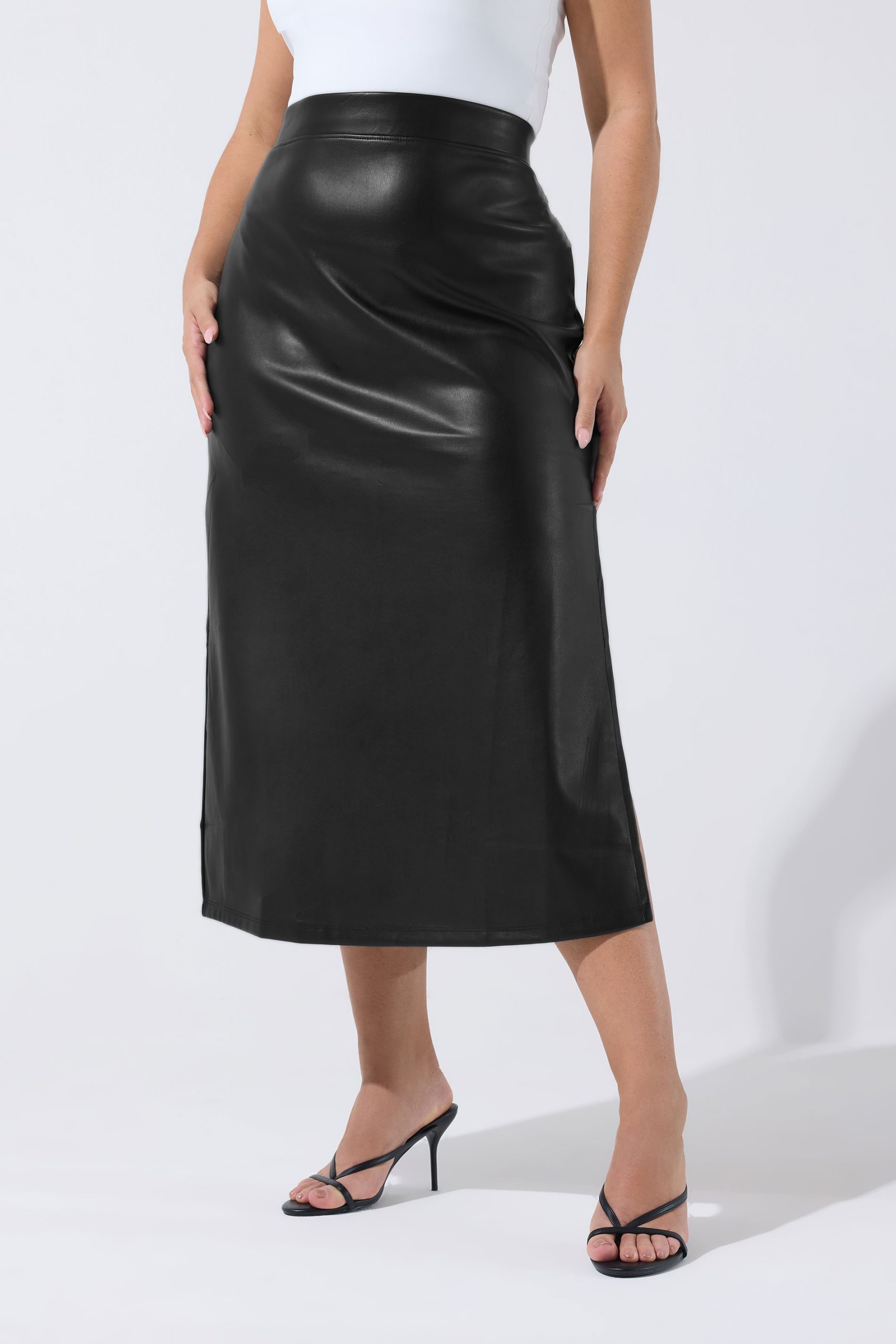 Limited Collection Lange Rok Van Imitatieleer Met Zijsplit In Zwart Size 58-60