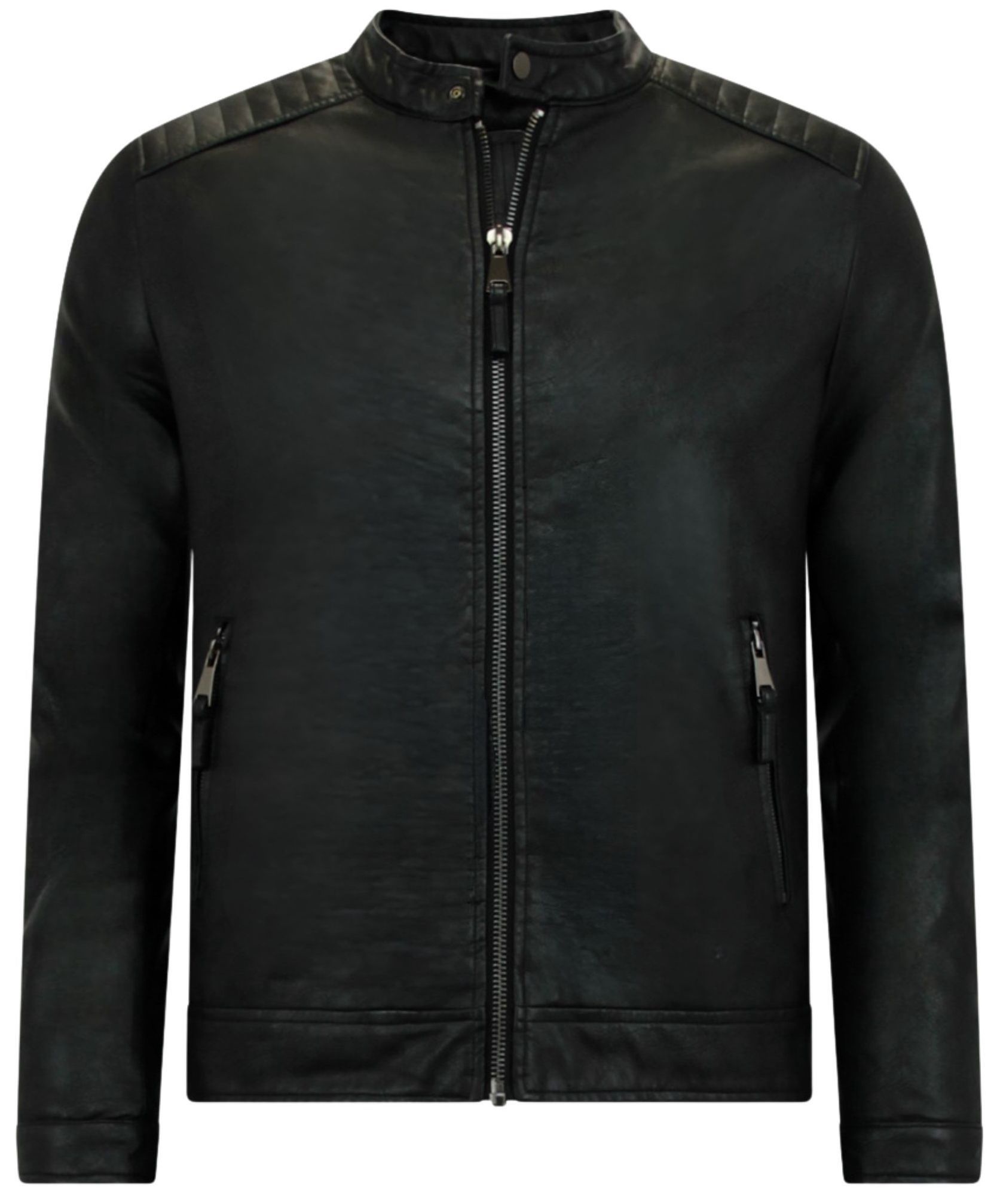 Nep leren Jack heren – Biker jas – Zwart – Specificaties:- Nep leren jas heren – Kleur: Zie afbeelding – Zwart- Artikelcode: ZMG-8091- Lengte: Kort- Pasvorm: Slim Fit- Sluiting: Rits- Materiaal: 100% Polyester- Zakken: 2 Jaszakken, 1 binnenzak- Seizoen: N.O.O.S.- Wasvoorschrift: Machinewas 30 graden- Beschikbare Maten: S – M – L – XL – XXL