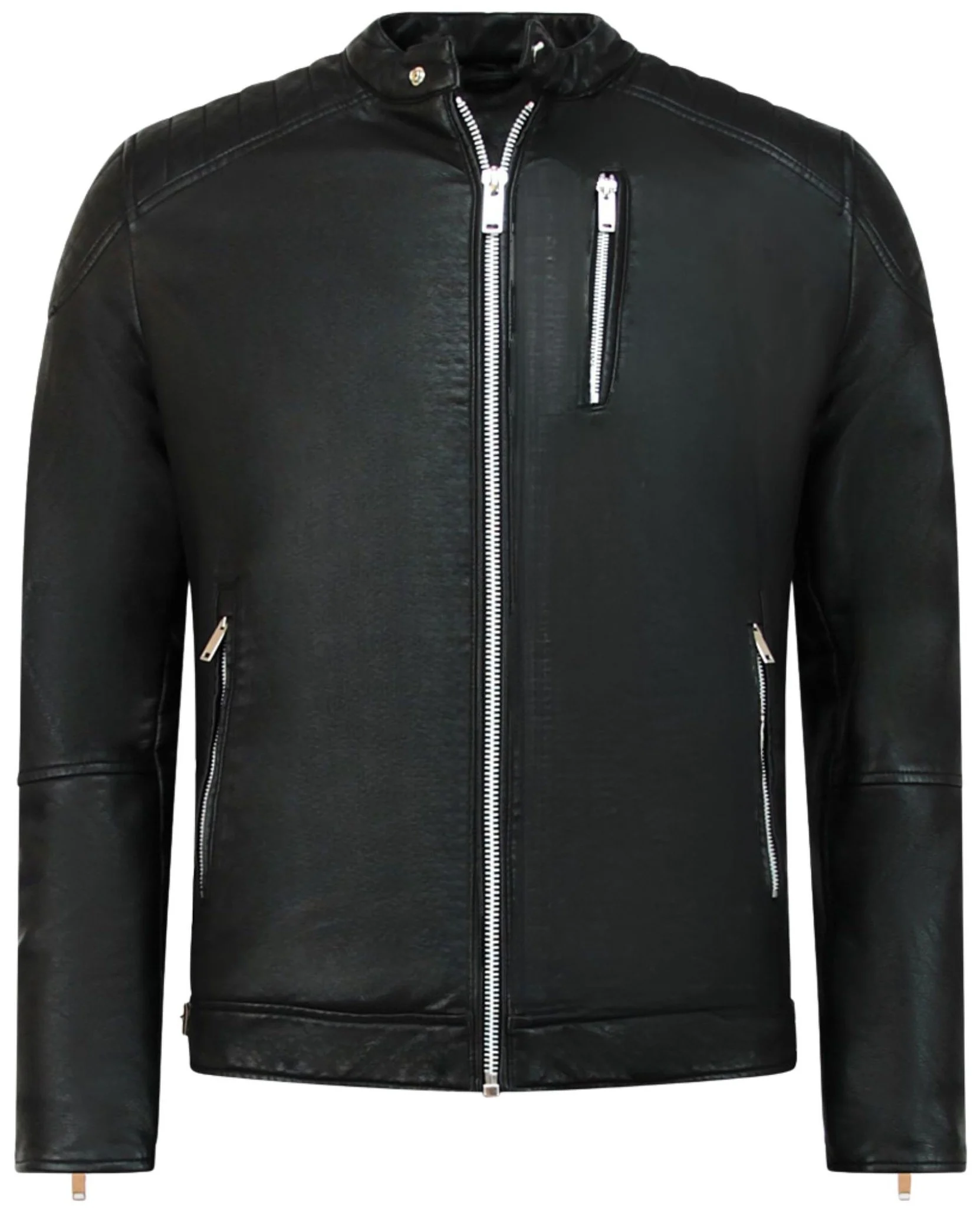 Nep leren jas heren – Motor Jack – Zwart – Specificaties:- Nep leren jas heren – Kleur: Zie afbeelding – Zwart- Artikelcode: ZMG-8091- Lengte: Kort- Pasvorm: Slim Fit- Sluiting: Rits- Materiaal: 100% Polyester- Zakken: 2 Jaszakken, 1 binnenzak- Seizoen: N.O.O.S.- Wasvoorschrift: Machinewas 30 graden- Beschikbare Maten: S – M – L – XL – XXL