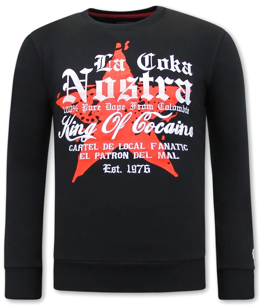 Heren Sweater – Escobar King Of Cocaine – Zwart – Specificaties:- Heren Sweater – Escobar King Of Cocaine – Artikel code: 11-6420- Kleur: Zie Afbeelding – Zwart- Seizoen: Voorjaar / Najaar- Kraag: Ronde Kraag- Mouwen: Lange Mouw- Patroon: Print- Kwalitatief: Hoogwaardige Afwerking- Materiaal: 84% Katoen en 16% Polyester- Weefsel: Geweven- Pasvorm: Getailleerd Italiaans- Wasvoorschrift: Handwas, Binnenste buiten wassen (Niet in de droger)- Beschikbare maten: S – M – L – XL – XXLLocal Fanatic is een jong merk voor modebewuste mannen die aandacht besteden aan kleding en uiterlijk met de Allure en Glamour.Kenmerkend van het merk zijn de zeefdruk- en digitaal prints die gegarandeerd staan voor kwaliteit van vooruitstrevende stoffen in Italiaanse pasvormen.