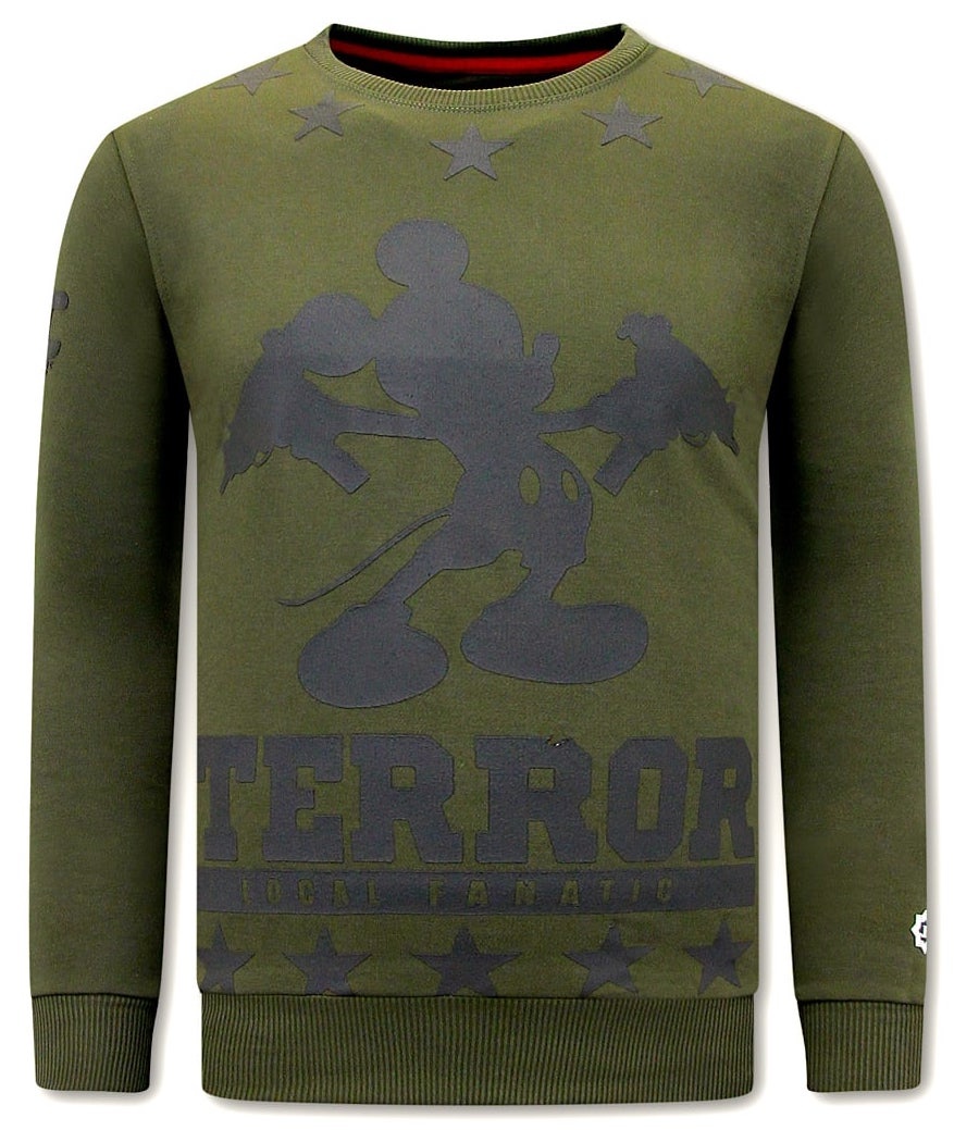 Heren Sweater met Print – Terror Mouse – Groen – Specificaties:- Heren Sweater met Print – Terror Mouse- Artikel code: 11-6450- Kleur: Zie Afbeelding – Groen- Seizoen: Voorjaar / Najaar- Kraag: Ronde Kraag- Mouwen: Lange Mouw- Patroon: Print- Kwalitatief: Hoogwaardige Afwerking- Materiaal: 84% Katoen en 16% Polyester- Weefsel: Geweven- Pasvorm: Getailleerd Italiaans- Wasvoorschrift: Handwas, Binnenste buiten wassen (Niet in de droger)- Beschikbare maten: S – M – L – XL – XXLLocal Fanatic is een jong merk voor modebewuste mannen die aandacht besteden aan kleding en uiterlijk met de Allure en Glamour.Kenmerkend van het merk zijn de zeefdruk- en digitaal prints die gegarandeerd staan voor kwaliteit van vooruitstrevende stoffen in Italiaanse pasvormen.