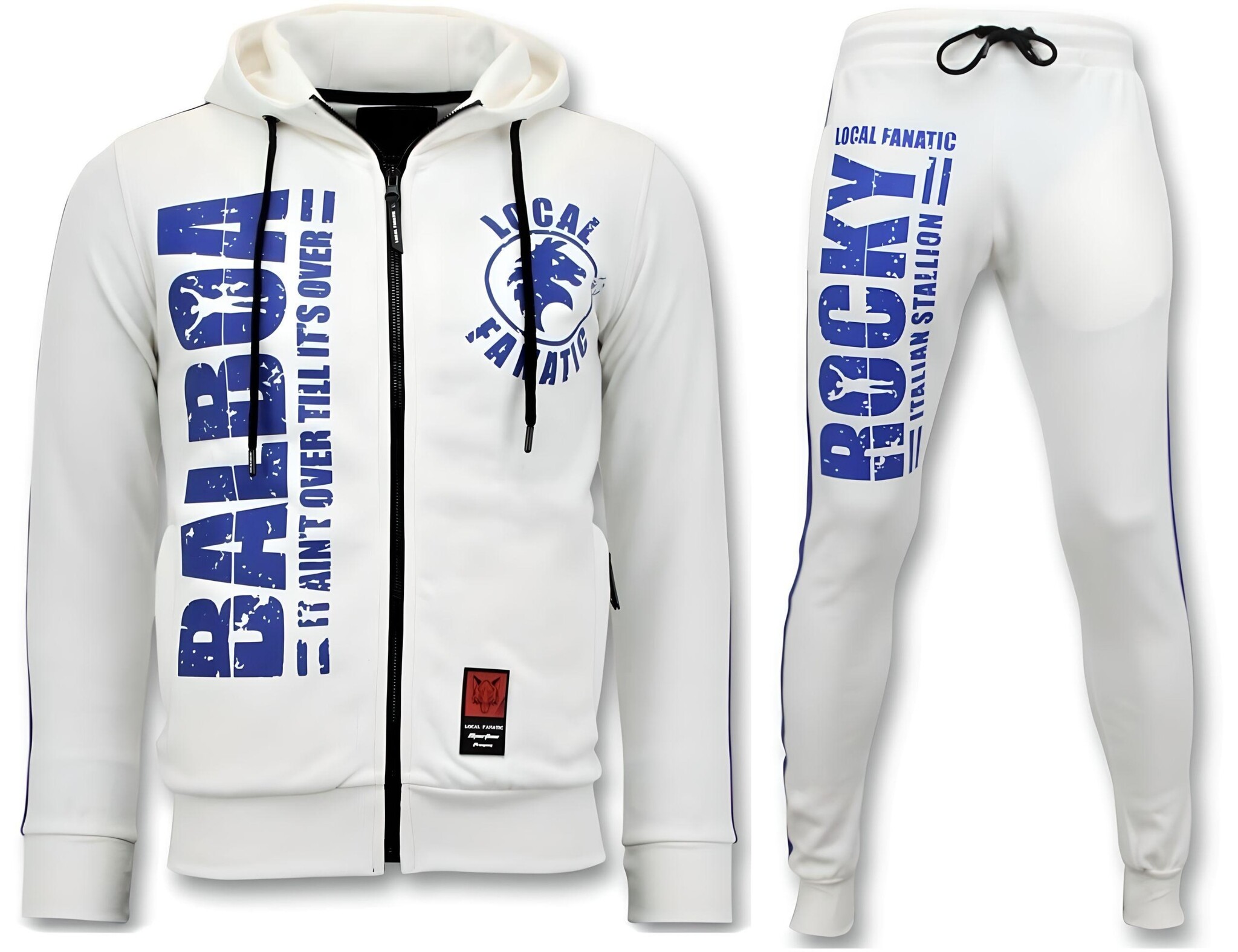 Exclusieve Heren Trainingspak – Rocky Balboa Sport Pak – Wit – Specificaties:- Exclusieve Heren Trainingspak- Rocky Balboa Sport Pak- Kleur: Wit- Artikel code : 11-6247PW- Seizoen: Voorjaar / Najaar- Zakken Vest: 2 Steekzakken- Mouwen: Lange Mouw- Zakken broek: 2 Steekzakken- Kwalitatief Hoogwaardige Afwerking- Materiaal: 60% Katoen, 40% Polyester- Weefsel: Dun geweven- Pasvorm: Regular Fit- Pasvorm broek: Regular Fit- Wasvoorschrift: Machinewas 30 graden, Binnenste buiten wassen (Niet in de droger)- Beschikbare maten: XS – S – M – L – XL Local Fanatic is een jong merk voor modebewuste mannen die aandacht besteden aan kleding en uiterlijk met de Allure en Glamour. Kenmerkend van het merk zijn de zeefdruk- en digitaal prints die gegarandeerd staan voor kwaliteit van vooruitstrevende stoffen in Italiaanse pasvormen.