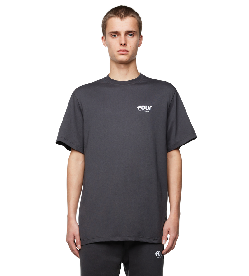 FOUR Logo T-Shirt in Asphalt The FOUR T-Shirt in Asphalt is your go-to minimalist staple — crafted from 100% premium cotton with a soft, breathable feel. Cut in a oversize fit , it features a tonal FOUR logo on the chest for a subtle, clean finish that works across seasons. Versatile and easy to style, this tee is ideal forlayering or wearing on its own. Pair it with jeans, joggers, or under a jacket — it’s made to go with everything. Oversized fit Round neck 180gsm single jersey Small logo on the chest This is an oversized fit. If you prefer a fitted silhouette, size down from your regular size.