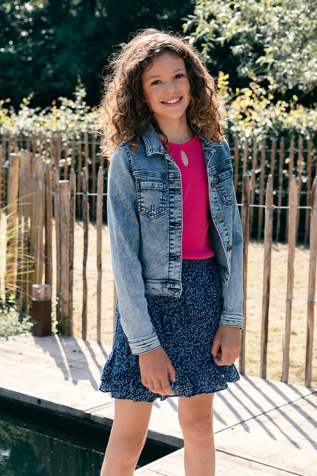 Slim fit top in een felle pink kleur. Nice te combineren in deze eerste levering van LOOXS 10sixteen. Trendy keyholes geven dit t-shirt een echte teen look. Fijne rib in een zachte katoenen jersey.