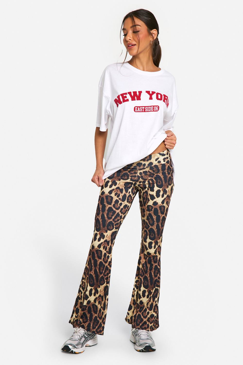 Luipaardprint broek met lage taille en uitlopende pijpen