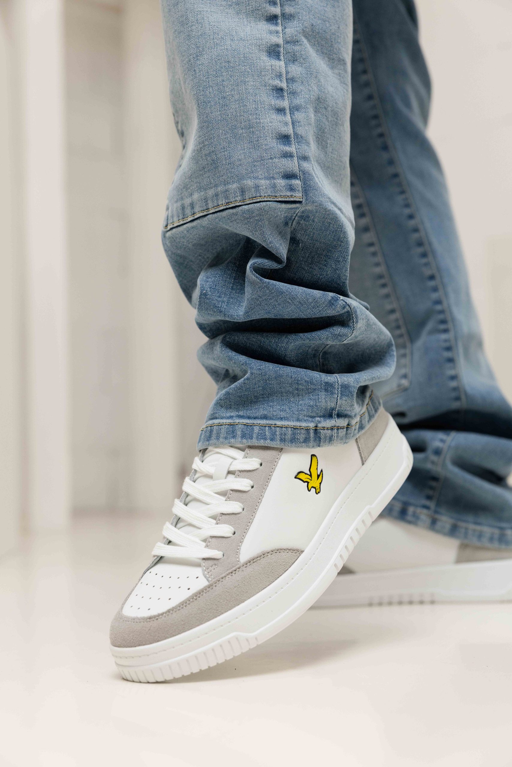 De Lyle & Scott Culross 02 Sneakers voor Heren zijn een must-have voor het komende lente/zomer seizoen. Deze stijlvolle sneakers zijn gemaakt van hoogwaardig leer en hebben een normale pasvorm. De sneakers zijn uitgevoerd in een trendy colourblock design in de kleuren wit en grijs. De vetersluiting zorgt ervoor dat de sneakers perfect aansluiten op de voet. Met deze sneakers van het bekende merk Lyle & Scott ben je verzekerd van comfort en stijl in één. Perfect voor elke casual outfit!
