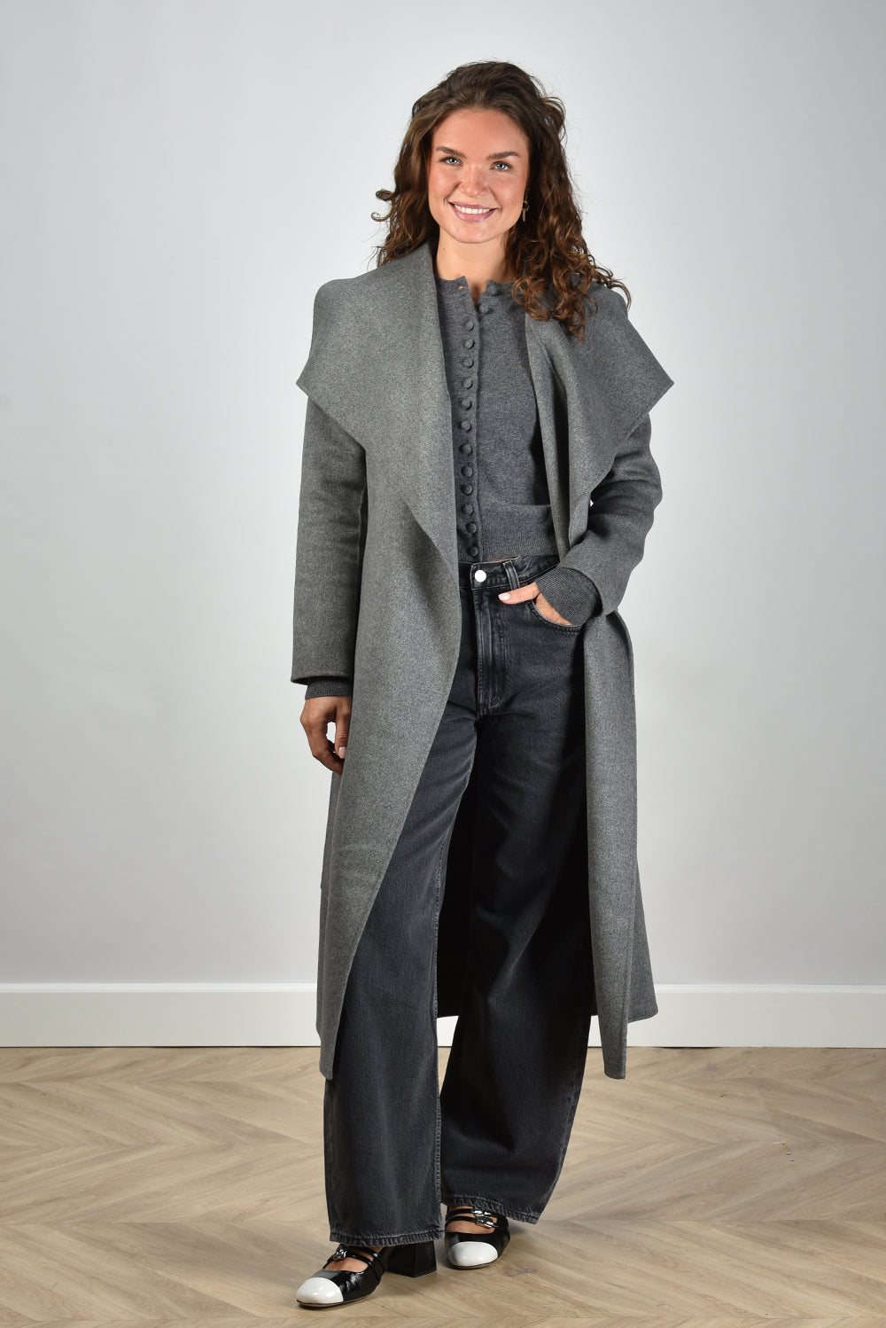 De jas MAI-CN van Mackage is een wolmantel die direct opvalt door zijn strakke silhouet en ceintuur in de taille. De stof van 100% wol voelt stevig en vol aan, met een gladde afwerking die mooi valt langs het lichaam. De kleur carbon mix geeft het grijs extra diepte en past bij zowel lichte als donkere tinten. Deze jas valt normaal op maat en sluit netjes zonder zwaar te voelen. Mackage staat bekend om zijn oog voor detail en perfecte snit, ontwikkeld met het Canadese klimaat als uitgangspunt. Zo ontstaat een jas die technisch sterk is, maar ook moeiteloos elegant voor de stad. Combineer bijvoorbeeld met de Agolde jeans Low Slung Baggy voor een moderne balans tussen stoer en verfijnd.