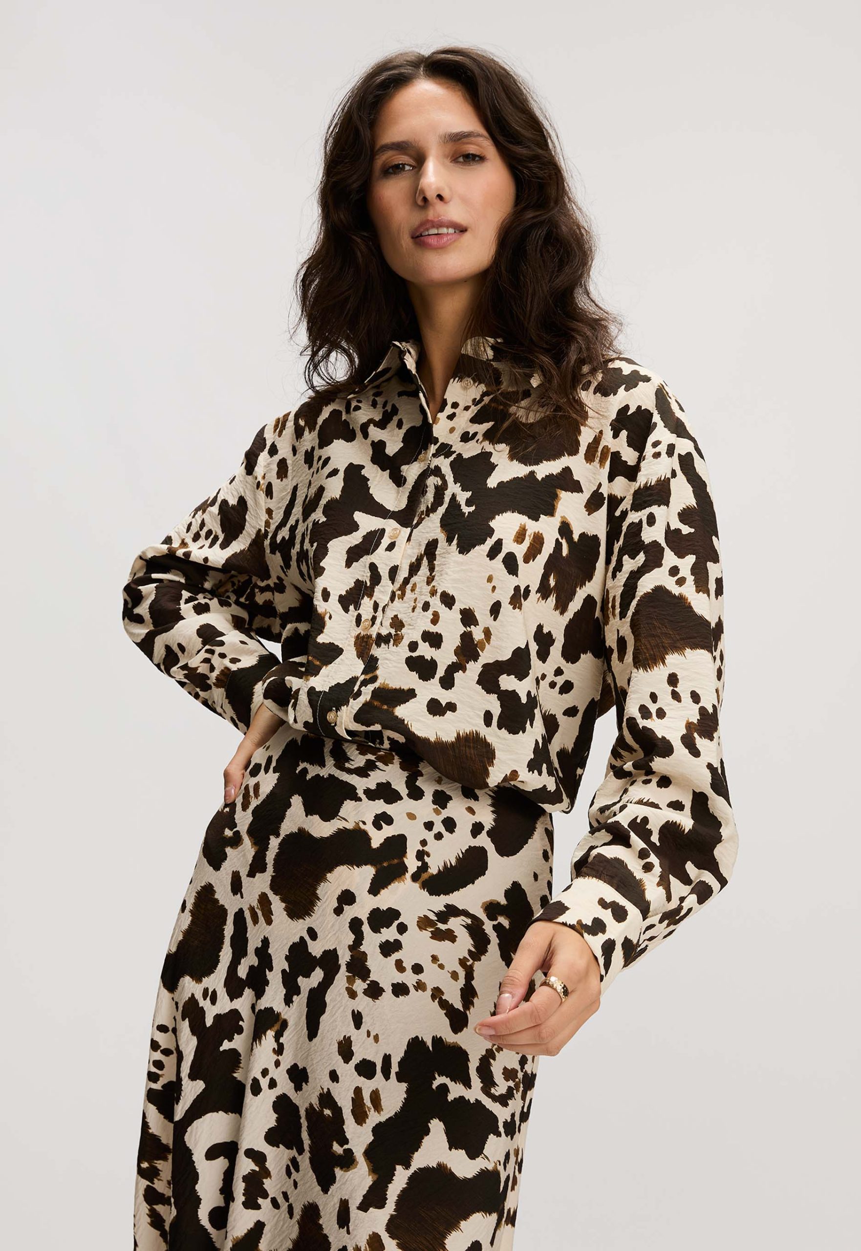 Dit is de Mecca Blouse van het merk Madness. Deze blouse heeft een prachtige gevlekte print en is gemaakt van een comfortabele mix van viscose en polyamide. De blouse is voorzien van lange mouwen, en sluit met een knoopsluiting, wat een elegante uitstraling geeft.