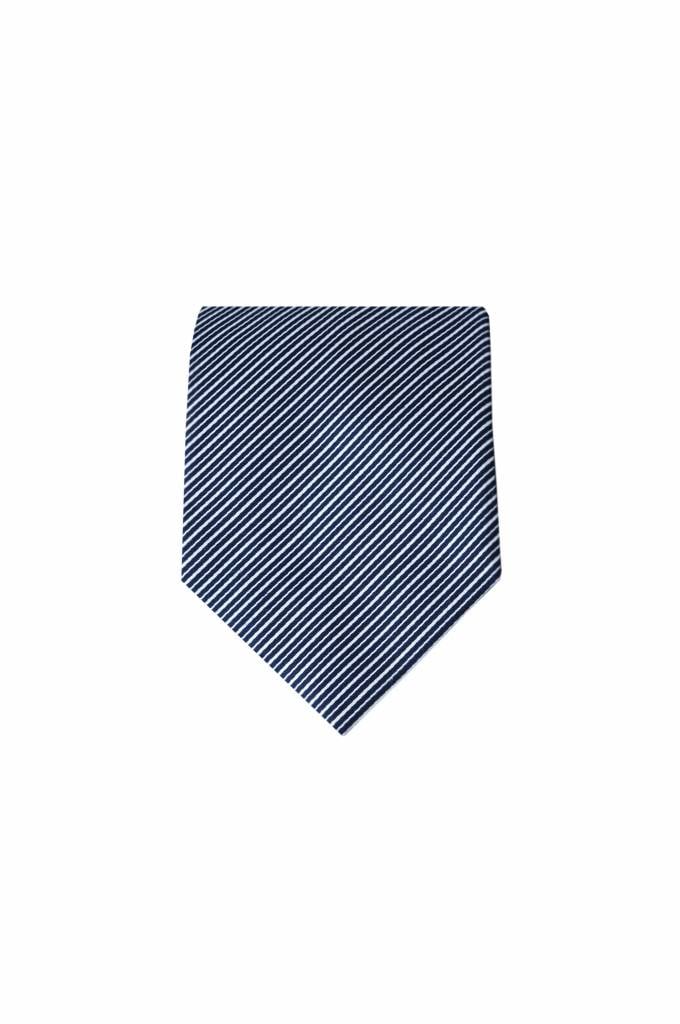 Blauwe stropdas m. strepen dessin, binnen de zelfde stof, voering v. scheerwol v. e. volle knoop, en een goed model. Shop online bij Italian Design!