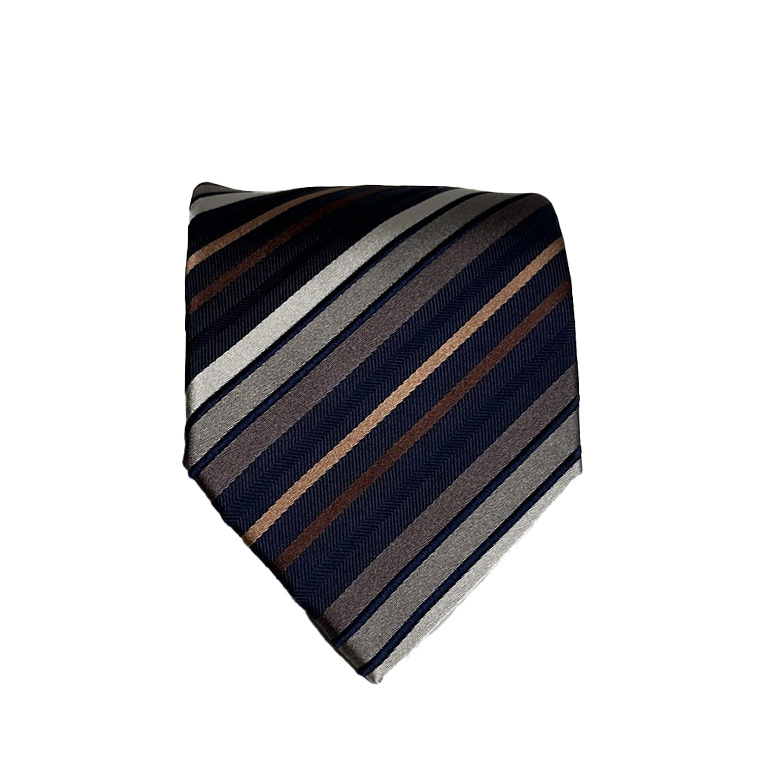 Blauwe stropdas met grijze en bruine strepen, 'n voering van zuiver scheerwol voor een volle knoop, en blijvend goede vorm. Shop nu online bij Italian Design!