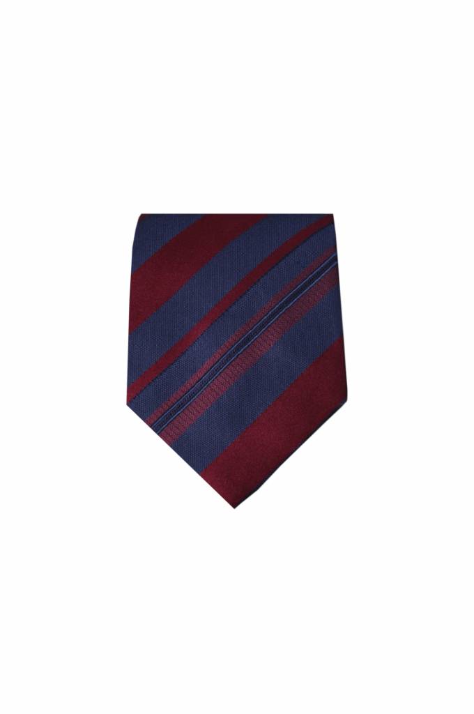 Blauwe stropdas m. rode strepen, binnen de zelfde stof, voering v. scheerwol v. e. volle knoop, en een goed model. Shop online bij Italian Design!